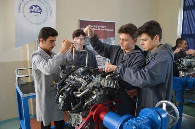 Sakarya Ticaret ve Sanayi Odası Motorlu Araçlar Teknolojisi Mesleki ve Teknik Anadolu Lisesi Alan öğretmeni Hakan Ercan, Öğrencilerimiz istekli ve aileleri tarafından desteklendiği için bizim en büyük avantajımız budur. Sakarya’da motor otomotiv endüstrisi sanayi çok gelişmiş durumda. İhracatta ana kalemi oluşturmakta öğrencilerimizin de iş garantisi olan severek isteyerek ailelerin desteklediği bir alana gelmesi bizi mutlu ediyor. Burada yetişen öğrencilerimiz geleceğin mühendisleri olacak. Otomotiv mühendisi olacak ve yerli üretimlerde söz sahibi olacak konuma gelecek ins allah. Biz bunlar için mücadele ediyoruz. Öğrencilerimiz bu atölyede motorlu araçların temel ana organı olan otomotiv motorunu sökme takma katalog değerlerine göre ölçümlerini yapmayı yürütmektedirler. Bu alanda bizler öğrencilerimize her daim yardımcı olmaktayız.