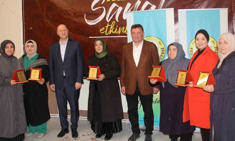 Ferizli’de meslek hayatlarının 15. yılını dolduran esnaf kadınlara da teşekkür plaketi verildi.