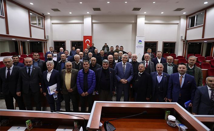 Geyve mahalle muhtarlarına nazik ziyaretleri dolayısıyla teşekkür ederek sözlerine başlayan Başkan Ekrem Yüce, “2019 yılında şehrimize hizmet için yolculuğa çıktık. Kollarımızı sıvadık ve ilçe ilçe analizler yaptık, talepleri aldık. Acil ihtiyaçları tespit ettik. Önceliklere göre çalışmalarımıza başladık. Geride bıraktığımız süreçte de Geyve’de pek çok önemli yatırımı tamamlayarak hemşehrilerimizin istifadesine sunduk. Alifuatpaşa’nın en önemli caddesi Suat Yalkın’ı yeniledik. İlçemize yakışır meydan çalışmasını tamamladık. Safibey’de bölge tarımsal üretimine hizmet sunacak Ürün Toplama Merkezimiz de yüzde 70 seviyelerinin üzerine çıktı. Kısa süre önce ebediyete uğurladığımız Üstad Sezai Karakoç’un şiirlerine konu olan gül bahçesini de ilçemize kazandıracağız.” dedi.