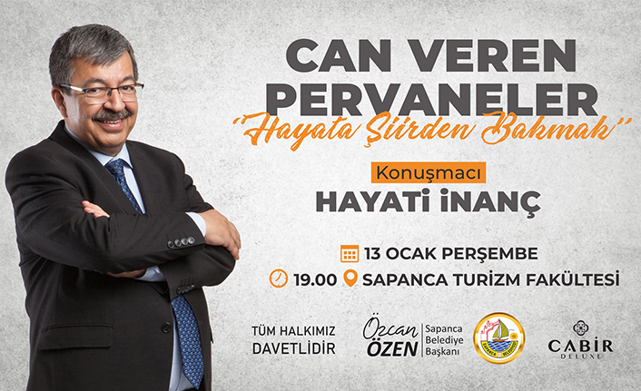 Sapanca Belediyesi ve Cabir Otel tarafından ortaklaşa düzenlenen etkinlikle yazar Hayati İnanç, “Can Veren Pervaneler” konulu söyleşisi ile Sapancalılar ile buluşuyor. Tüm vatandaşları programa davet eden Sapanca Belediye Başkanı Özcan Özen, “Hayati İnanç hocamızın “Can Veren Pervaneler” konulu etkinliğimize tüm hemşerilerimizi davet ediyorum” dedi.