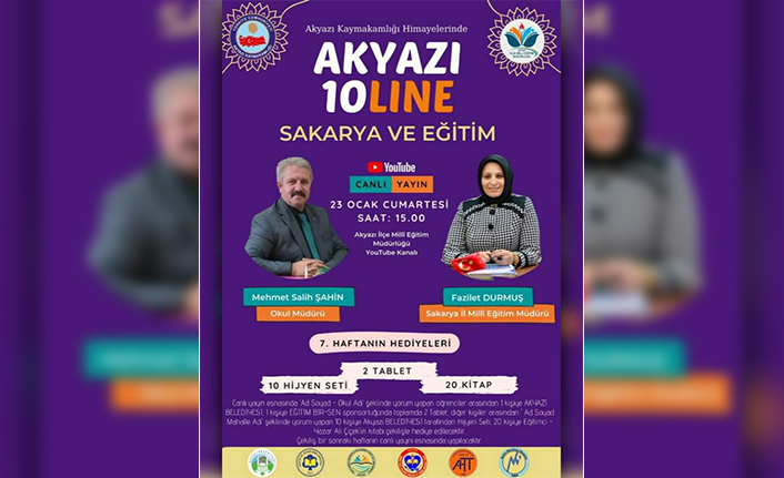 Moderatörlüğünü Akyazı Ahmet Hasnun Tunçsoy İlkokulu Müdürü Mehmet Salih Şahin’in yapacağı programda yayına katılan izleyiciler arasında yapılacak çekilişte 2 tablet, 10 hijyen seti ve 20 kitap hediye edilecek.