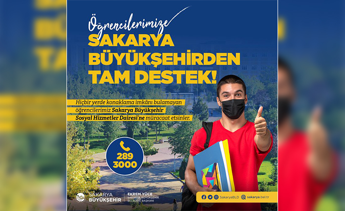 Sakarya Büyükşehir Belediye Başkanı Ekrem Yüce, şehir dışından Sakarya’ya öğrenim görmek üzere gelen ve hiçbir yerde konaklama imkanı bulamayan öğrencilerin Büyükşehir Belediye’sinin Sosyal Hizmetler Dairesi’ne müracaat etmeleri gerektiğini söyledi. Konaklama imkanı bulamayan öğrencilerin, 0264 289 30 00 irtibat numarasıyla da iletişime geçebilecekleri kaydedildi. Öğrencilerin eğitim süreçlerinin her anında yanında olacaklarını söyleyen Başkan Yüce, Büyükşehir Belediyesi olarak kapılarının her zaman açık olduğunu ifade etti.