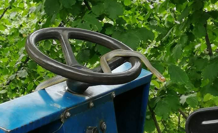 Yunus UZUN adlı çiftçi sabah aracımla bahçeme gittim. Öğlen 13;00’da evime gitmek için aracımın yanına geldiğimde, aracımın direksiyonuna dolanmış bir yılana rastladım.