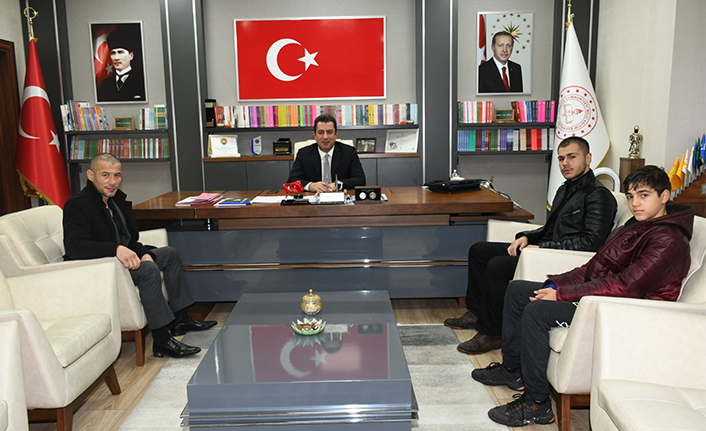 İl Müdürü Savaşçı’yı Sporcusuyla birlikte ziyaret eden, MMA İl temsilcisi ve Okullarda hayat boyu Eğitim Spor ve kişisel gelişim İl Başkanı Antrenör Hasan Zımba, nazik davetlerinden dolayı İl Müdürü Savaşçı ’ya teşekkür etti. Zımba, sizlerin maddi ve manevi desteği devam etiği sürece Sporcum Tanaçar, Okulunu ve İlimizi onurlandırmaya devam edecektir. dedi