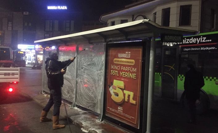 Konu ile ilgili Ulaşım Dairesi Başkanlığı tarafınca yapılan açıklamada, “Durak yıkama ve durak bakım onarım ekiplerimiz tarafından yolcu duraklarında bakım, onarım ve temizlik çalışmalarımız devam ediyor. Bu kapsamda şehir merkezinde bulunan Ofis, Donatım ve İhsaniye garajlarında yolcu peronları temizlik çalışmalarını gerçekleştirdik. Yolcu duraklarının ortak kullanım alanı olduğunu ve afiş, reklam, poster, pankart gibi görüntü kirliliği yaratacak malzemelerin yasak olduğunu hatırlatarak vatandaşlarımızdan bu konuda hassasiyet bekliyoruz. Çalışmalarımız tüm hızıyla devam edecektir” denildi.