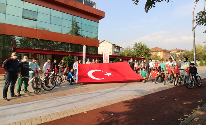 bisiklet gönüllüleri ile birlikte bir çok bisiklet sever Türk Bayrakları eşliğinde pedal çevirdi.