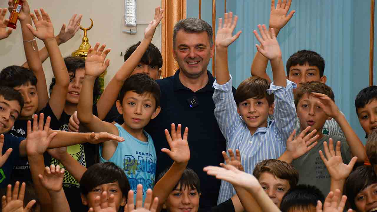 Başkan Sarı, Osmanlı Camii İmam Hatibi Nuh Çuhadar’ın refakatinde, Yaz Kur’an Kursu kapsamında camide eğitim gören çocuklarla bir araya gelerek tüm çocuklara çikolata ve şeker ikramında bulundu.