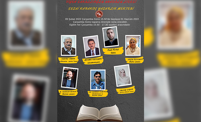 Türkiye Yazarlar Birliği Sakarya Şubesiyle yapılan protokol çerçevesinde gerçekleşecek Sezai Karakoç Yazarlık Mektebi’nde, şubeye üye şair ve yazarlar ücretsiz olarak gençlere yazarlık eğitimi verecekler. Akademisyenler Dr. Mehmet Özdemir ve Dr. Serhat Demirel, şair Kadir Korkut, Öykü yazarı Arzu Özdemir, Roman yazarı M. Furkan Özren, Portre yazarı Fahri Tuna ve Masal yazarı Tülay Sayan’ın eğitim vereceği projenin bitim tarihi olan 1 Haziranda, katılan öğrencilerin eserlerinden bir kitap yayımlanacak ve görkemli bir edebiyat gecesi düzenlenecek.