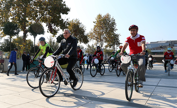 Sakarya Büyükşehir Belediye Başkanı Ekrem Yüce, 29 Ekim- 4 Kasım Kızılay haftası münasebetiyle Kızılay gönüllüleri ile bisikletseverlerin düzenlediği bisiklet turuna katıldı. Demokrasi Meydanı’nda başlayan bisiklet turuna Bisiklet ve Doğa Sporları Derneği üyeleri de katıldı. Kızılay haftası etkinliklerinin başlangıcı için pedal çeviren Başkan Yüce, 1868’ten bu yana ülkemiz başta olmak üzere tüm dünyada faaliyetlerini sürdüren Kızılay’ın 153. kuruluş yıldönümünü kutladı.