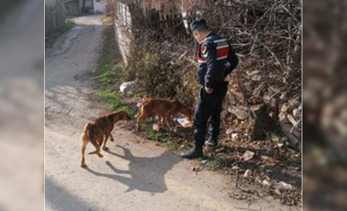 Jandarma Sokak Hayvanlarına yiyecek bıraktı