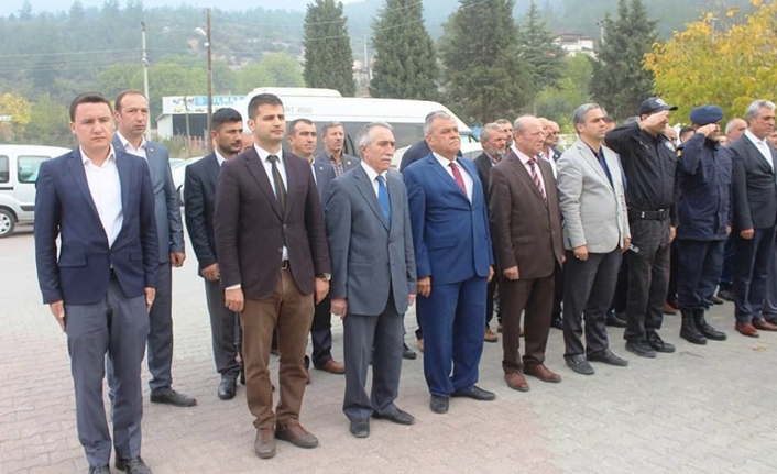 Hükümet Konağı önündeki Atatürk Büstü’ne Muhtarlar Derneği’nin çelenk sunumu yapıldı. Saygı duruşu ve akabinde İstiklal Marşı söylendi