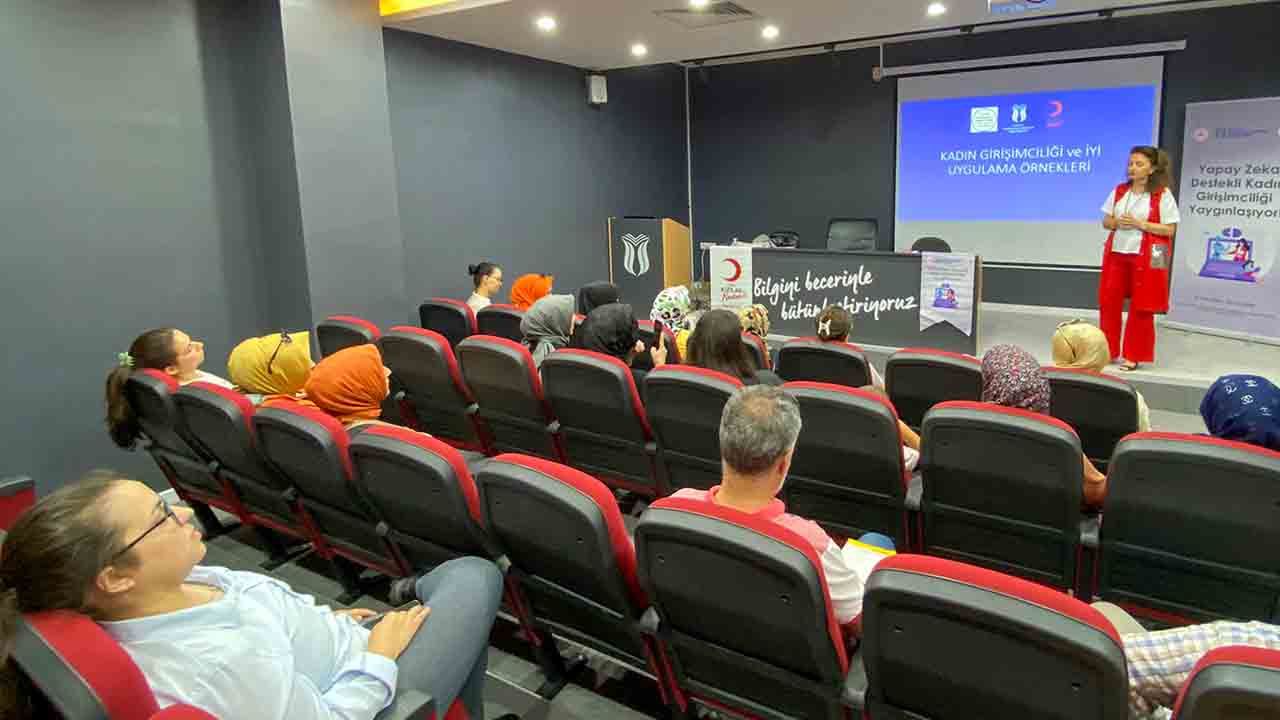 Genç Gelişim ve Girişim Derneği ile Türk Kızılay Kadın Kolları’nın koordinatörlüğünde yürütülen ve SUBÜ’nün ortağı olduğu ‘Yapay Zekâ Destekli Kadın Girişimciliği Yaygınlaşıyor’ başlıklı proje kapsamında 20 kadın girişimci adayına eğitim verildi.