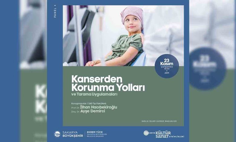 Sakarya Büyükşehir Belediyesi Kasım kültür sanat etkinlikleri ‘Kanserden Korunma Yolları ve Tarama Uygulamaları’ konulu sağlık paneli ile devam edecek. Kültür ve Sosyal İşler ile Sağlık İşleri Dairesi Başkanlığı’nın iş birliğiyle düzenlenecek panele SAÜ Tıp Fakültesi öğretim üyeleri Prof. Dr. İlhan Hacıbekiroğlu ve Doç. Dr. Ayşe Demirci konuşmacı olarak katılacak. 23 Kasım Çarşamba günü AKM’de gerçekleştirilecek panel saat 14.00’da başlayacak. Konuyla ilgili yapılan açıklamada, “Kanserden Korunma Yolları ve Tarama Uygulamaları’ konulu panele tüm vatandaşlarımız davetlidir” denildi.