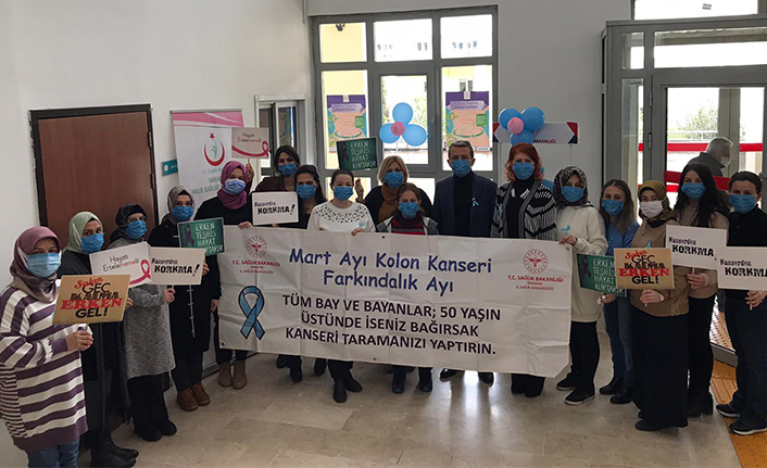 İl Sağlık Müdürlüğü giriş katında 2 gün boyunca kurum personellerinin katkılarıyla kolon kanserine dikkat çekmek ve farkındalık oluşturmak amacıyla bir araya gelindi ve standlar kuruldu. Etkinlikte mavi maske, mavi kurdele ve el pankartları kullanılarak kanserde erken teşhis ve taramaların önemi vurgulandı. Standımızı ziyaret eden 50-70 yaş aralığındaki vatandaşlarımıza ve genç personellerin ailelerine verilmek üzere test kiti dağıtıldı.