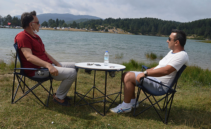 Yaylaya gezmeye gelen Levent Kaymakcı, ailemle buraya piknik yapmaya geldim ve iyikide gelmişim, gerçekten çok güzel bir doğası ve insanın ruhunu dinlendiriyor, havası çok güzel, gölü çok güzel gerçekten burayı herkesin görmesini tavsiye ederim. Burada gerçekten günümüzü çok iyi geçiriyoruz, mangalımızı yaptık, ormanda yürüyüş yaptık, spor olsun diye balık tuttuk yani gerçekten muhteşem güzelliğe sahip bir yer burası gerçekten keyifli bir vakit geçiriyoruz.