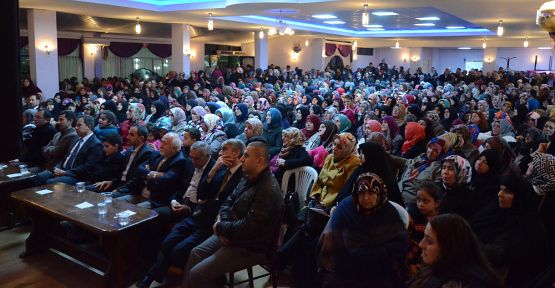 Bahçem Düğün Salonu’nda yaklaşık 1500 kişinin katıldığı konferansta salonda yer kalmayınca erkek misafirler konuşmayı dışarıdan takip etmek zorunda kaldı.