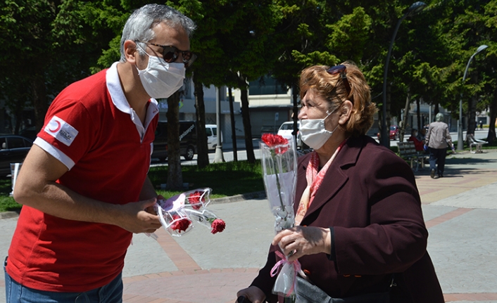 Kızılay başkanı annelere karanfil dağıttı