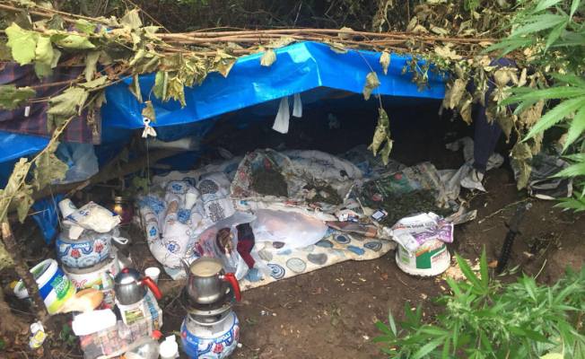 Olay yeri incelemesinde şüpheli Şinasi S. İsimli şahsın ormanlık alan içerisinde kendisine yaşam alanı oluşturduğu tespit edildi.