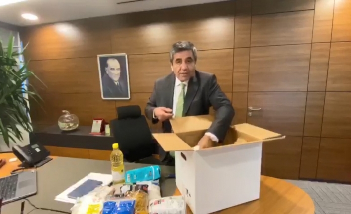 1 Kg pirinç, 1 Kg bulgur, 1 paket makarna, 1 Kg nohut, 1 paket arpa şehriye, 1 Kg mercimek, 1 Kg toz şeker, 1 Kg un, 500 gr çay, 1 Lt ayçiçek yağı, 1 paket tuz, 500 Gr siyah zeytin, 1 Kg domates salçası.