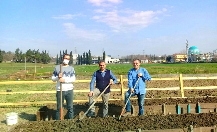 Arifiye Bekir Sıtkı Durgun İlkokulunun küçük çiftçileri okulların açılmasıyla birlikte bahçede marul, soğan, maydanoz, nane gibi ürünlerin ekimine başlayacaklar.