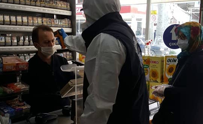 Coronavirüsü tedbirleri kapsamında Taraklı’da esnaf ve vatandaşlara İlçe Emniyet Amirliği polis ekipleri tarafından ateş ölçümü yapılarak salgınma korunma amacıyla alınan tedbirler hakkında bilgi verildi.
