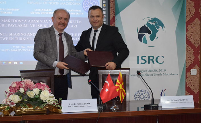 Her iki ülke akademisyenlerinin sunum yaptığı ve iş birliği anlaşmalarının olduğu “Türkiye ve Kuzey Makedonya Arasında Yükseköğretim Alanında Tecrübe Paylaşımı ve İşbirliği Arayışları” panelinde konuşan Prof. Şahin, “Sakarya Üniversitesi Türk Dünyası Araştırma Merkezi (TÜRKMER) olarak uluslararası çalışmalar yapıyoruz. TÜBİTAK’la ve farklı kurumlarla birçok bilimsel çalışma içindeyiz. Ancak kurulduğumuz günden itibaren Balkanlar’dan Doğu Asya’ya kadar coğrafyadaki dost ve akraba toplulukların birlikte bilgi ve bilim üretmesini ve bilimsel anlamda bir potansiyel küreselleşme alanı oluşturmasını amaçlıyoruz. Bu konuda özellikle Azerbaycan İktisat Üniversitesi ile önemli adımlar attık. Şimdi ise Kuzey Makedonya Vizyon Üniversitesiyle bu adımları atıyoruz. Bugün burada olmaktan mutluluk duyuyoruz. 1991’den beri Türkiye ile Kuzey Makedonya’nın küresel iş birliğini tecrübe ile bir senteze ulaştırmayı amaçlıyoruz. Son olarak Vizyon Üniversitesine yaptığımız iş birliğinden dolayı teşekkür ediyorum.” dedi.