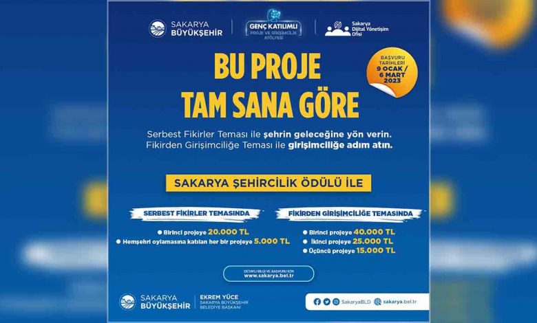 Geleceğin Sakarya’sını genç fikirlerle hazırlayan Büyükşehir Belediyesi, Genç Katılımlı Proje ve Girişimcilik Atölyesi Fikir Yarışmasını başlattı. 2 farklı temada gerçekleştirilecek yarışmada dereceye girenler büyük ödüllerin sahibi olacak.