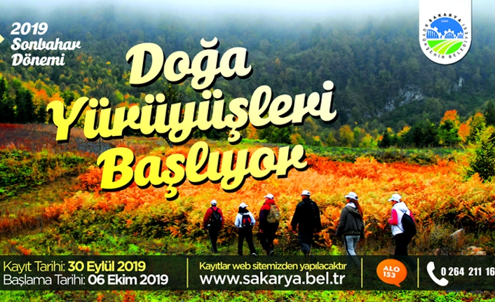Konuyla ilgili Gençlik ve Spor Hizmetleri Dairesi Başkanlığı’ndan yapılan açıklamada, “Sonbahar Doğa Yürüyüşlerimiz 6 Ekim Pazar günü Geyve Kılıçkaya parkuru ile başlayacak. 24 Kasın Pazar günü ise sona erecek. Kayıtlarımız yürüyüşlerin gerçekleştirileceği hafta içerisinde Büyükşehir Belediyesi kurumsal internet sayfası (www.sakarya.bel.tr) üzerinden yapılacak. İlk yürüyüş için kayıt 30 Eylül Pazartesi günü alınmaya başlayacak. Doğa yürüyüşleri için hareket Demokrasi Meydanı’ndan 8.30’da gerçekleştirilecektir”