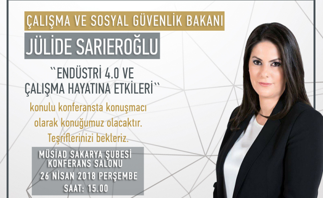 Müstakil Sanayici ve İşadamları Derneği(MÜSİAD) Sakarya Şubesi “Endüstri 4.0 ve Çalışma Hayatına Etkileri” adlı program kapsamında Çalışma ve Sosyal Güvenlik Bakanı Jülide Sarıeroğlu’nu ağırlayacak. kocaali