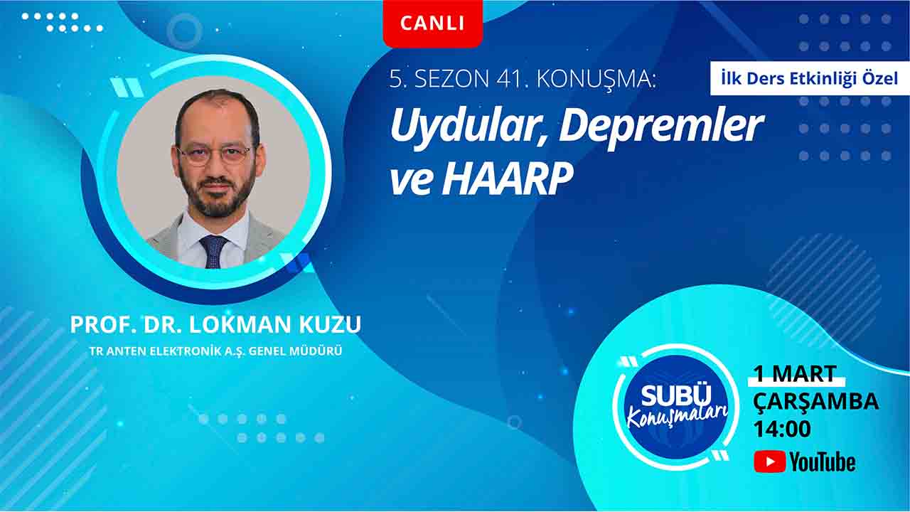 Sakarya Uygulamalı Bilimler Üniversitesi (SUBÜ) tarafından düzenlenen SUBÜ Konuşmaları’nın 5’inci sezonu ilk ders etkinliği ile başladı. İlk ders etkinliğinin konuşmacısı ‘Uydular, Depremler ve HAARP’ başlıklı konuyla TR Anten Elektronik A.Ş. Genel Müdürü Prof. Dr. Lokman Kuzu oldu. Moderatörlüğünü Lisansüstü Eğitim Enstitüsü Müdür Yardımcısı Dr. Öğretim Üyesi Ömer Yazıcı’nın yaptığı etkinlikte; uyduların türleri, kullanım alanları, depremlerin oluşum nedenleri, sismik hareketler, HAARP’in kullanım alanları ve deprem üzerine etkisi gibi konular konuşuldu. Üniversitenin YouTube kanalından canlı yayınlanan etkinlikte izleyicilerden gelen sorular da cevaplandırıldı.