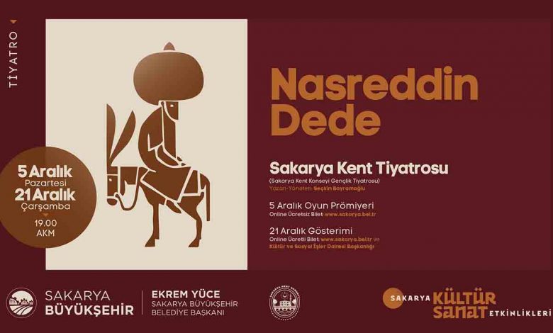 Sakarya Kent Konseyi Gençlik Tiyatrosu’nun sahneleyeceği ‘Nasreddin Dede’ oyununun prömiyeri 5 Aralık Pazartesi günü saat 19.00’da AKM’de gerçekleştirilecek.
