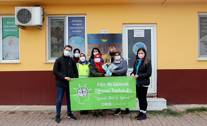 Rehabilite edilen sokak hayvanlarıyla vakit geçiren öğrenciler bakımevi personeline çiçek hediye etti.