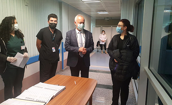 Arkadaşlarımız sahada, her noktada aşılama programının aralıksız yürütülmesi için canla başla çalışıyor. Duyarlı vatandaşlarımıza hem kendi sağlıklarını korudukları, hem de toplum sağlığını düşündükleri için teşekkür ediyoruz. İkinci doz aşı oranımız yüzde 80-85 seviyelerine geldiğinde salgını kontrol altına almış olacağız. Bu yüzden aşı olalım ve olmayanları aşı olmaya davet edelim.” diye konuştu. Vaka oranlarının artmaması için maske, mesafe ve hijyen kurallarını da unutmamak gerektiğinin altını çizen Öğütlü, acil serviste bekleyen hastalarla bir süre sohbet ederek, serviste yatan hastaları da ziyaret etti.
