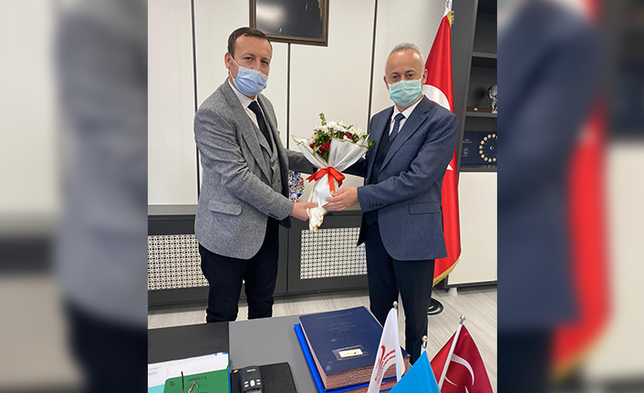 Ülkem İşçi Sendikaları Konfederasyonu’na (ÜLKEM-İŞ) Kamu ve Özel Sağlık Sosyal Hizmetleri İşçileri Sendikası (ÖZ SAĞLIK-SEN) Sakarya İl Başkanı Fatih Ayan; beraberindeki Yönetim Kurulu Üyesi ile birlikte Sakarya İl Sağlık Müdürü Doç. Dr. Aziz Öğütlü’yü makamında ziyaret etti. Ziyarette; sendika çalışmaları, Sakarya’da gerçekleştirmeyi planladıkları projeler hakkında İl Sağlık Müdürü Doç. Dr. Aziz Öğütlü’ye bilgi veren Öz Sağlık-Sen İl Başkanı Fatih Ayan; sendika oluşumu ve il bazında yürütülecek olan örgütlenme çalışmaları hakkında da bilgiler aktararak, ziyaret anısına çiçek takdim etti. Sakarya İl Sağlık Müdürü Doç. Dr. Aziz Öğütlü de kendisine yapılan ziyaretten dolayı duyduğu memnuniyeti dile getirerek, Öz Sağlık-Sen Sakarya İl Başkanı Fatih Ayan‘a teşekkür etti.