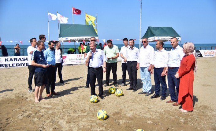 2019 TFF Plaj Futbolu Ligi Karasu etabı açılış programına Karasu Kaymakamı Aziz Mercan, Karasu Belediyesi Başkan Vekili Esra Bıyıklıoğlu, İlçe Emniyet Müdürü Mehmet Fatih Ersoy, İlçe Siyasi Parti Temsilcileri, İlçe Müftüsü Mustafa Aydın, Gençlik ve Spor İlçe Müdürü Kemal Ataç, ASKF Başkanı Yaşar Zımba, İlçe Yazı İşleri Müdürü Turan Yüzücü, Belediye Başkan Yardımcısı İsmail Karakaş, Esnaf ve Sanatkârlar Odası Başkanı İlyas Balcı, İlçe KYK Müdürü Taner Gürkan, Sakaryaspor Eski Başkanı Cevat Ekşi, Muhtarlar Derneği Başkanı İsmail Hakkı Topaloğlu, Yerel Basın ve çok sayıda vatandaş katıldı.