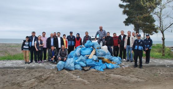 Olumsuz hava koşullarına rağmen elinde çöp poşeti ile sahili temizleyen aralarında Belediye Başkanı Ahmet Acar’ın da bulunduğu 30 kişilik protokol adeta temizlik dersi verdi.