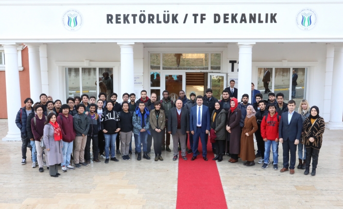 Samimi bir ortamda gerçekleşen programda yabancı öğrenciler, merak ettikleri soruları da Rektör Sarıbıyık’a Türkçe yönelterek bilgi alırlarken, dil pratiği yapma imkânı da buldular.