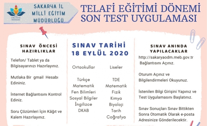 İl Millî Eğitim Müdürü Fazilet Durmuş, salgın sürecindeki eksikliklerle ilgili telafi dönemini kapsayan sınav nedeniyle tüm öğrencilere başarılar diledi. Durmuş, sınavda kullanılan soruların çözüm videolarının 21 Eylül’den itibaren İl MEM’in Youtube kanalından canlı olarak yayımlanacağını belirtti.