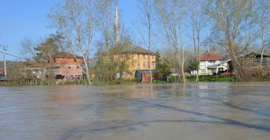 Sakarya nehrinin Karadeniz’e döküldüğü Karasu İlçesinde nehir suyu yükselince Tuzla mahallesinde, nehir kenarında bulunan iş yerlerini ve evleri su bastı.