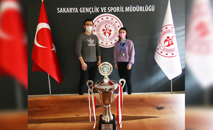 Sakarya Gençlik ve Spor İl Müdürü Arif Özsoy, altın kız Afra Adıyaman ve Antrenörü Serkan Yılmazer’i makamında kabul ederek tebriklerini iletti.