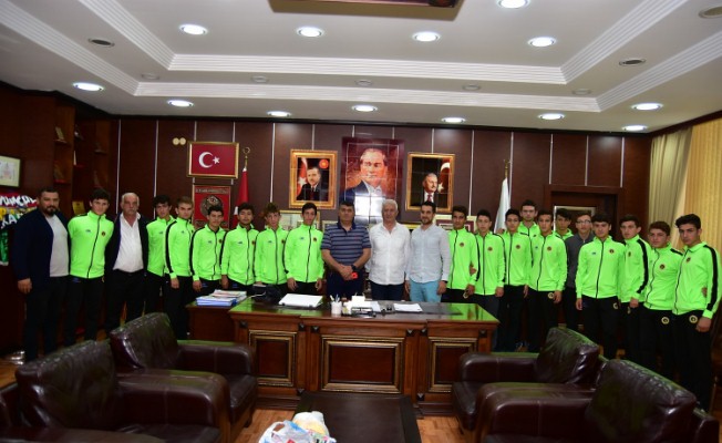 Karasu Aziziyespor Kulüp Başkanı Reşit Yetim, Yönetici Çetin Çal, Takımdan Sorumlu Genel Kaptan Şaban Altay, Antrenör Ersin Türker ve U17 futbolcuları Karasu Belediye Başkanı Mehmet İspiroğlu’nu ziyaret ettiler.