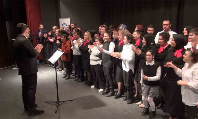 Adapazarı Yenikent Halk Eğitimi Merkezi bünyesinde çalışan kadrosuz usta öğreticiler, kursiyerler ve kuruma bağlı olan Özel Yürekler Kurs Merkezindeki kursiyerlerden oluşan koroda 22 korist, 20 eser seslendirdi. İbrahim Gültekin’in bağlamayla eşlik ettiği Ahmet Gönan’ın solo performansı ve program sonunda Özel Yürekler Kurs Merkezi öğrencilerinin koroya eşlik ettiği sahne de ayakta alkışlandı.