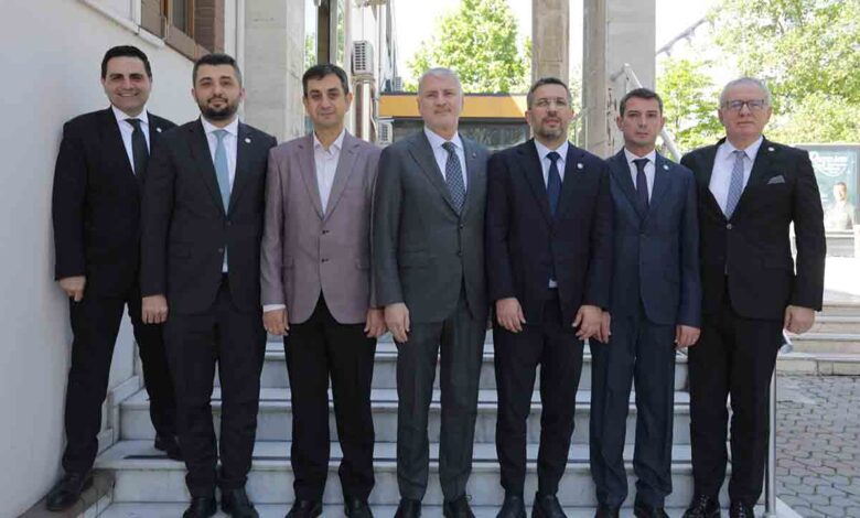 Sakarya Ticaret ve Sanayi Odası Yönetim Kurulu Başkanı A. Akgün Altuğ, Meclis Başkanı Erdem Ercan ve Yönetim Kurulu Üyeleri, yerel ve idari seçimlerin ardından mazbatalarını alarak göreve başlayan ilçe belediye başkanlarına hayırlı olsun ziyaretinde bulunuyor.