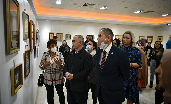 Ayşen Karakoç Civili nezaretinde 2021- 2022 Eğitim Öğretim Yılı Güz ve Bahar Dönemi “Tezhip, Yazı Süsleme ve Minyatür” dersini alan 2. 3. ve 4. sınıfta öğrencilerinin emekleriyle gerçekleştirilen sergiyi gezen Rektör Savaşan, öğrencilere sonra çalışmalarında başarılar dileyerek teşekkür belgesi takdim etti.