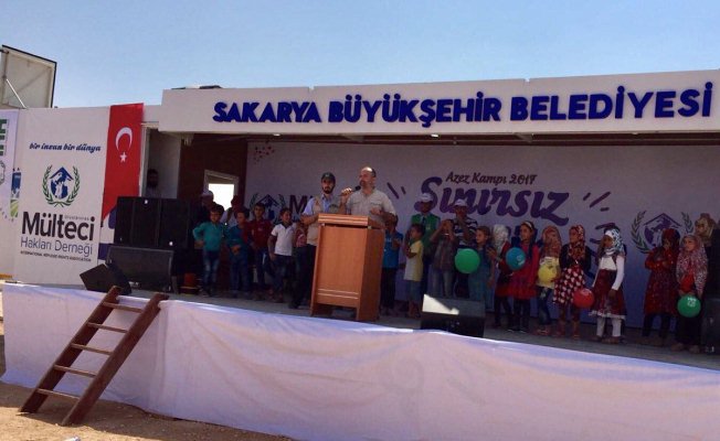 Sakarya Büyükşehir Belediyesi, Uluslararası Mülteci Hakları Derneği ve İHH’nın Suriye Azez’de yaşayan savaş mağduru çocuklar için düzenlemiş olduğu ‘Sınırsız Şenlik’ programına Etkinlik Tırı gönderdi. Büyükşehir Belediyesi’nin etkinlik tırı Azez kampında bulunan çocukların yüzünde tebessüm oluşturdu. 18 Eylül Pazartesi günü başlayan ve 28 Eylül Perşembe günü son bulacak olan program, 6-14 yaş arası 3 bin savaş mağduru çocuğa ulaşmayı hedefliyor. Azez’de bulunan Uluslararası Şam Üniversitesi Kampüsü içinde gerçekleştirilen ‘Sınırsız Şenlik’ kapsamında savaş çocukları tiyatro gösterimi, sokak oyunları, yarışmalar, deneyler, çocuk oyunları ve sinema gösterimi gibi etkinliklerde bir araya geliyor.