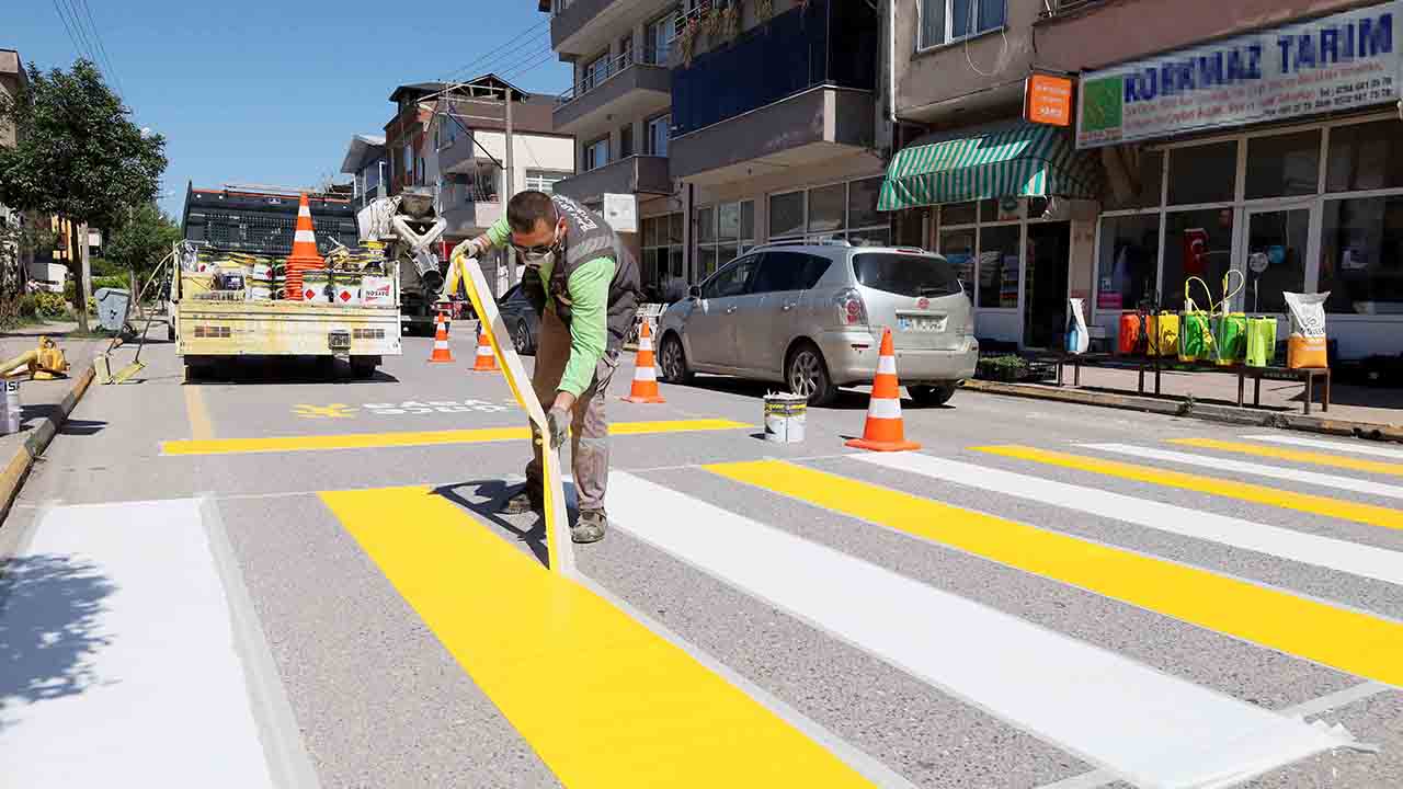 Sakarya Büyükşehir Belediyesi yaya geçitlerinde vatandaşların güvenliği için ‘önce yaya’ çizgi uygulamalarını sürdürüyor. Havaların ısınmasıyla birlikte yaya ulaşımının arttığı bu günlerde yapılan yeniliklerle sürücülerin ve yayaların güvenliği ön planda tutuluyor.
