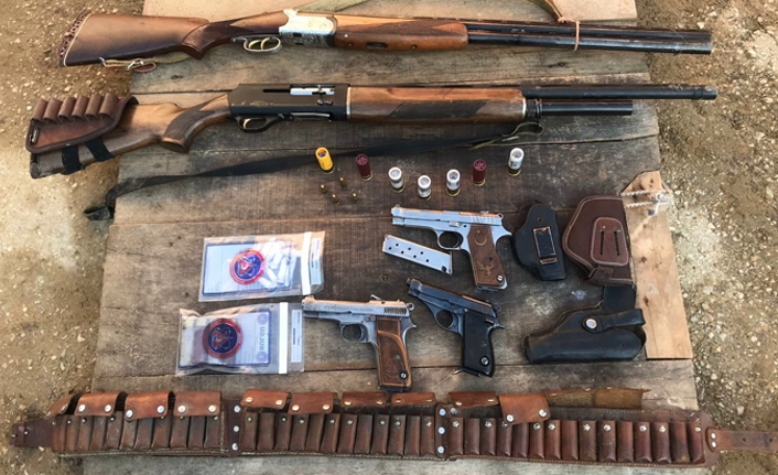 2 Adet Tüfek, 3 Adet Tabanca, 7 Adet tüfek fişeği, 4 Adet 9 mm tabanca mermisi, 8 Adet 7. 65 mm tabanca kovanı, 2 Adet 9 mm tabanca kovanı, yaklaşık 1.5 metre uzunluğunda fişek kılıfı tarafımızca ele geçirilmiştir.