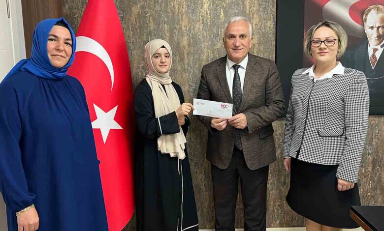 Serdivan İHO öğrencisinin önce il birincisi, ardından Düzce’de yapılan bölge finallerinde bölge birincisi olmasından ve Türkiye finallerine katılma hakkı kazanmasından büyük memnuniyet duyduklarını belirten Serdivan İlçe Milli Eğitim Müdürü Ali Dere öğrencimize hediyesini takdim ederken, başarıda emeği geçen öğretmenlerimizi ve okul yöneticilerini de tebrik etti.