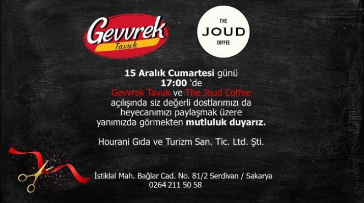 Gevvrek Tavuk The Joud Caffee adı altında Serdivan’da Cumhur Başkanı Recep Tayyip Erdoğan’ı ekonomi seferberliği çağrısına cevap vererek, yatırıma inadına devam ettiler. 15 Aralık Cumartesi günü saat 17.00’da açılışı gerçekleşecek olan mekan da hazırlıklar tamamlandı. Protokol üyelerinin açılış kurdelesini keseceği açılış da sürprizler de yer alacak. Farklı hizmet ve ferah bir mekan da her damak lezzetine uygun menüler, müşterilerini bekliyor olacak. kocaali