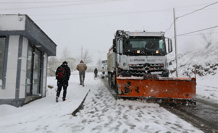 İlçede yayaların ve sürücülerin yollarda herhangi bir olumsuzlukla karşılaşmaması ve günlük yaşamın aksamaması adına karla mücadele ekiplerinin 24 saat boyunca sahada olacağı bildirildi.